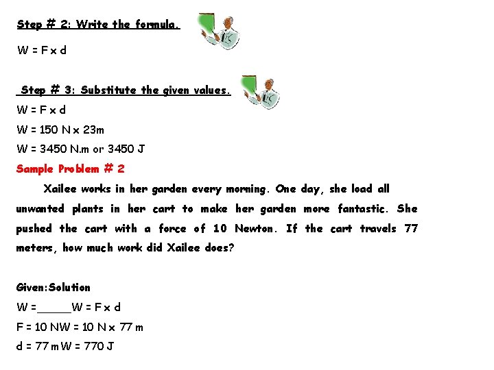 Work F=450 N d=05 m W=Fd (450 N) x (05 m) 225 J 6 Page Group Work 1 Calculate the work done if you exert a force of 250 N and move a crate 4 m Looking For Given Relationship Solution Work F=250 N d=4 m W=Fd (250 N) x (4 m) 1000 J 2 Calculate the work done when Dylan applies a force of 100N to the wall. Free math problem solver answers your algebra, geometry, trigonometry, calculus, and statistics homework questions with stepbystep explanations, just like a math tutor. 12 An m x n matrix A is called upper triangular if all entries lying below the diagonal entries are zero, that is, if Aij that the upper triangular matrices form a subspace of Mmxn(F) = 0 whenever i > j.