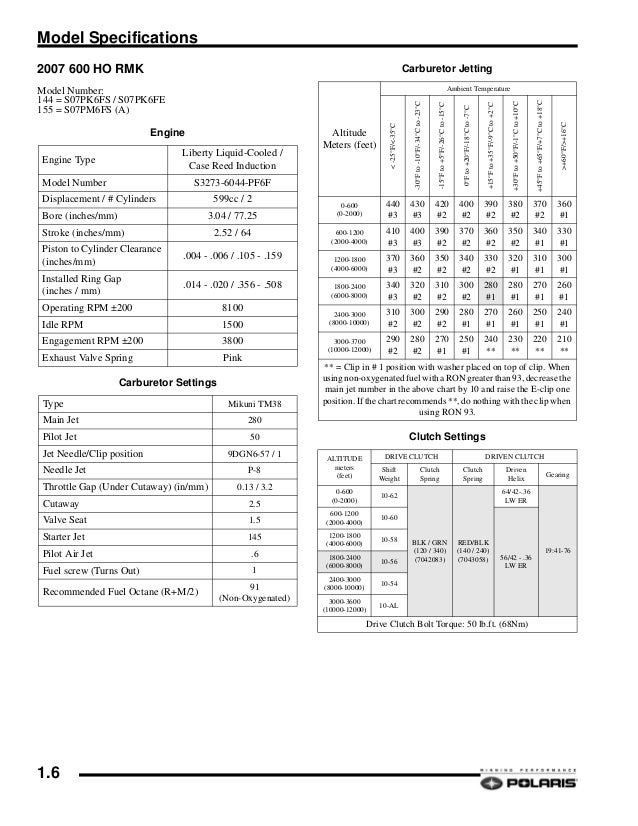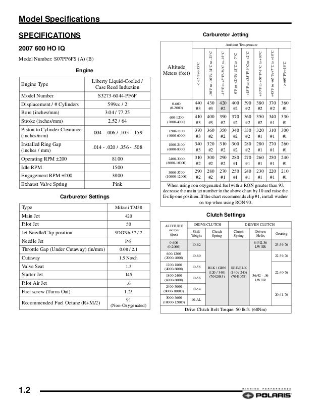 Polaris Jetting Chart Crian
